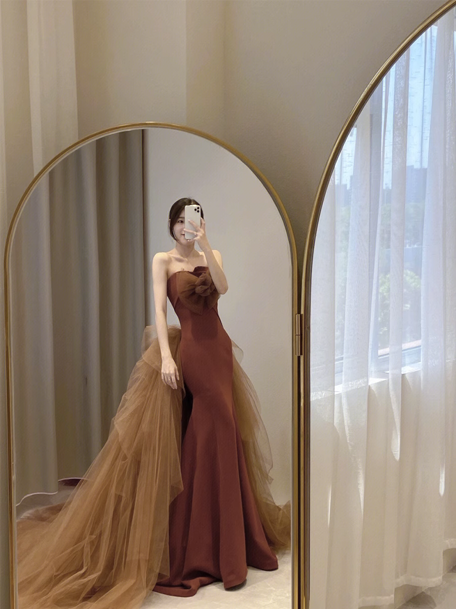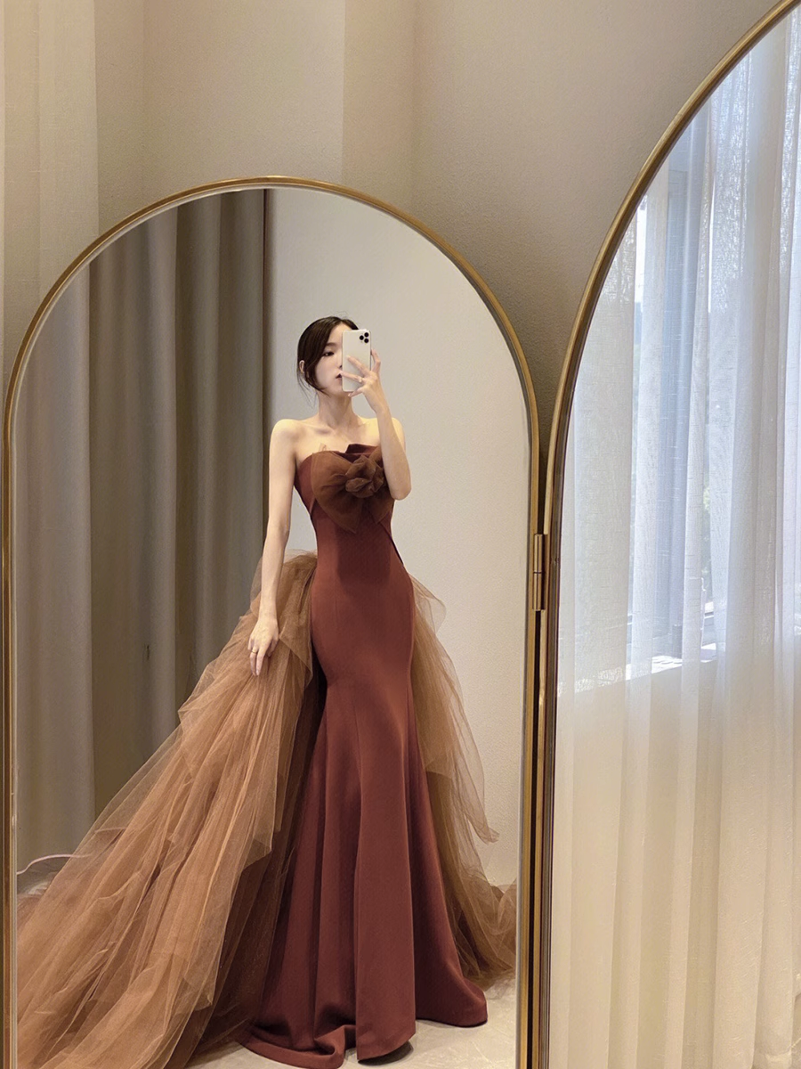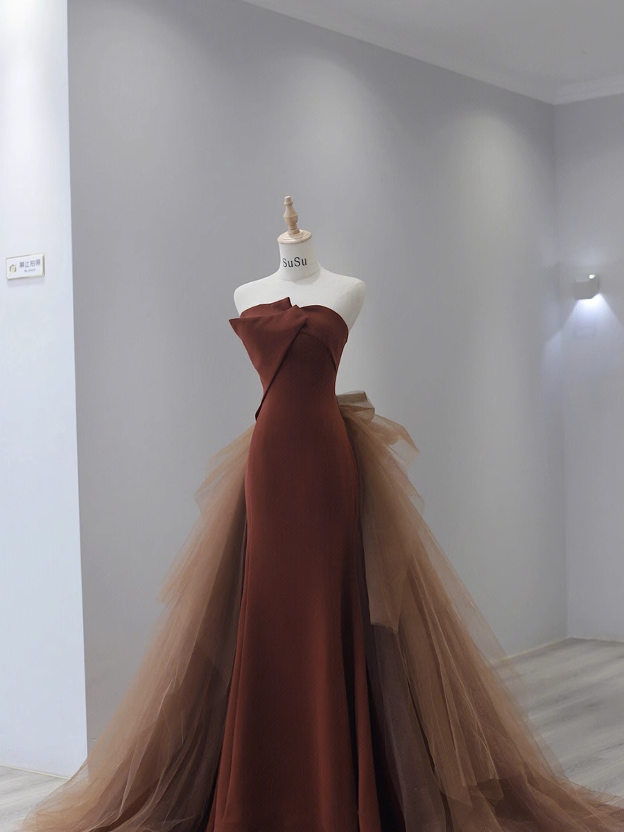 Simple Mermaid Strapless Brown Floor Length Prom Dress HZ1024