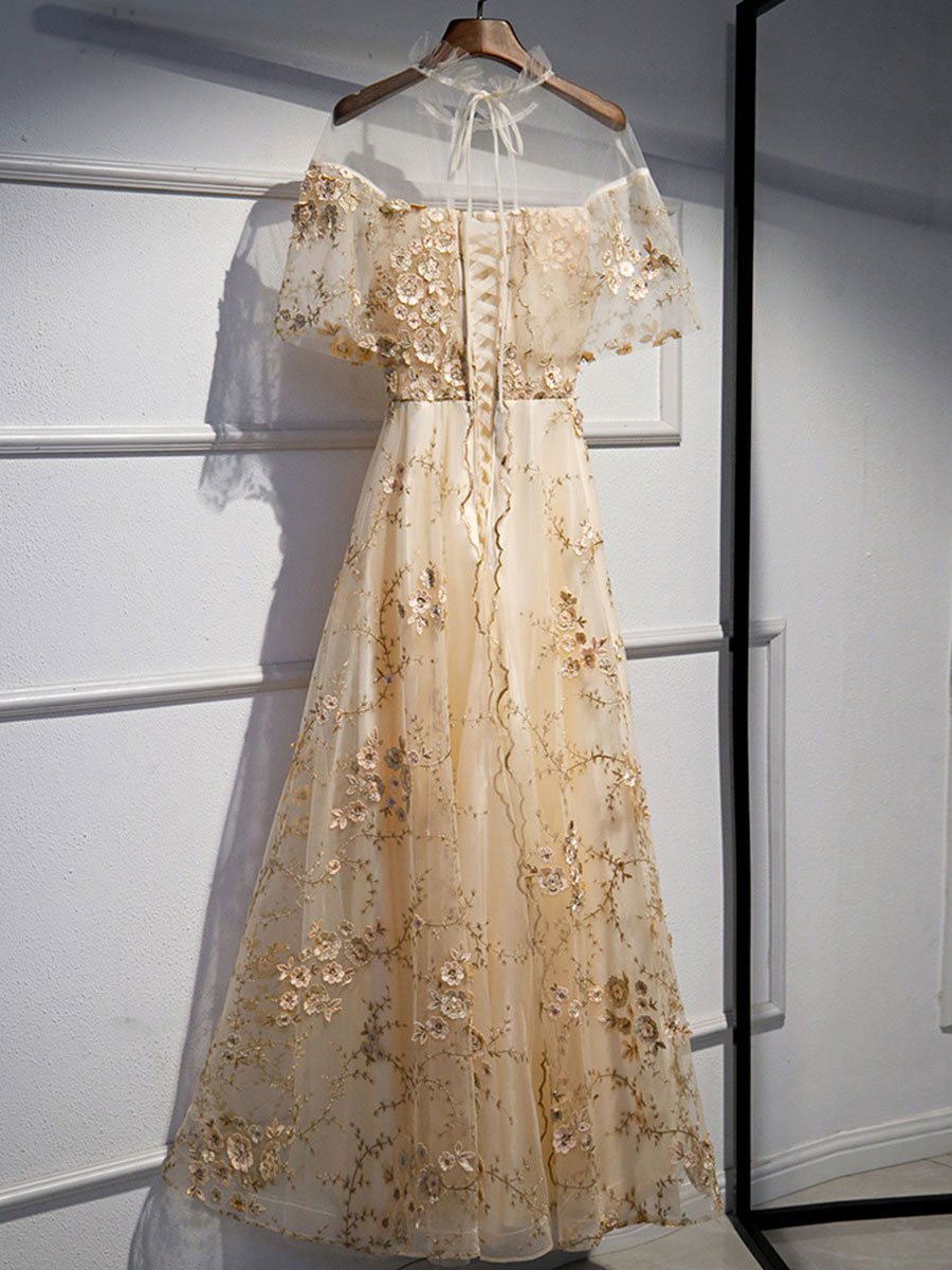 Champagne tulle lace long prom dress champagne formal dress HZ1024