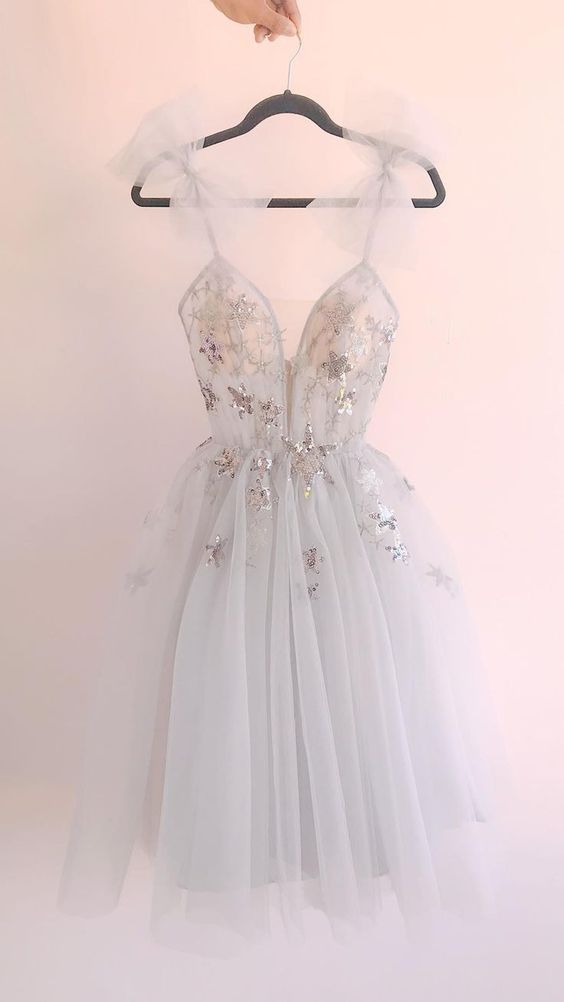 A-Line Illusion Cutout V-Neck Bowknot Spaghetti Straps Short Homecoming Dress Birthday Dress HZ1024