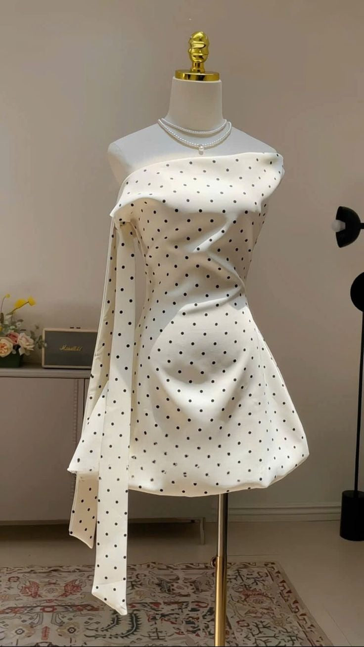 Chic A Line Off The Shoulder Polka Dots Satin Short Homecoming Dress 19th Birthday Outfits HZ1024