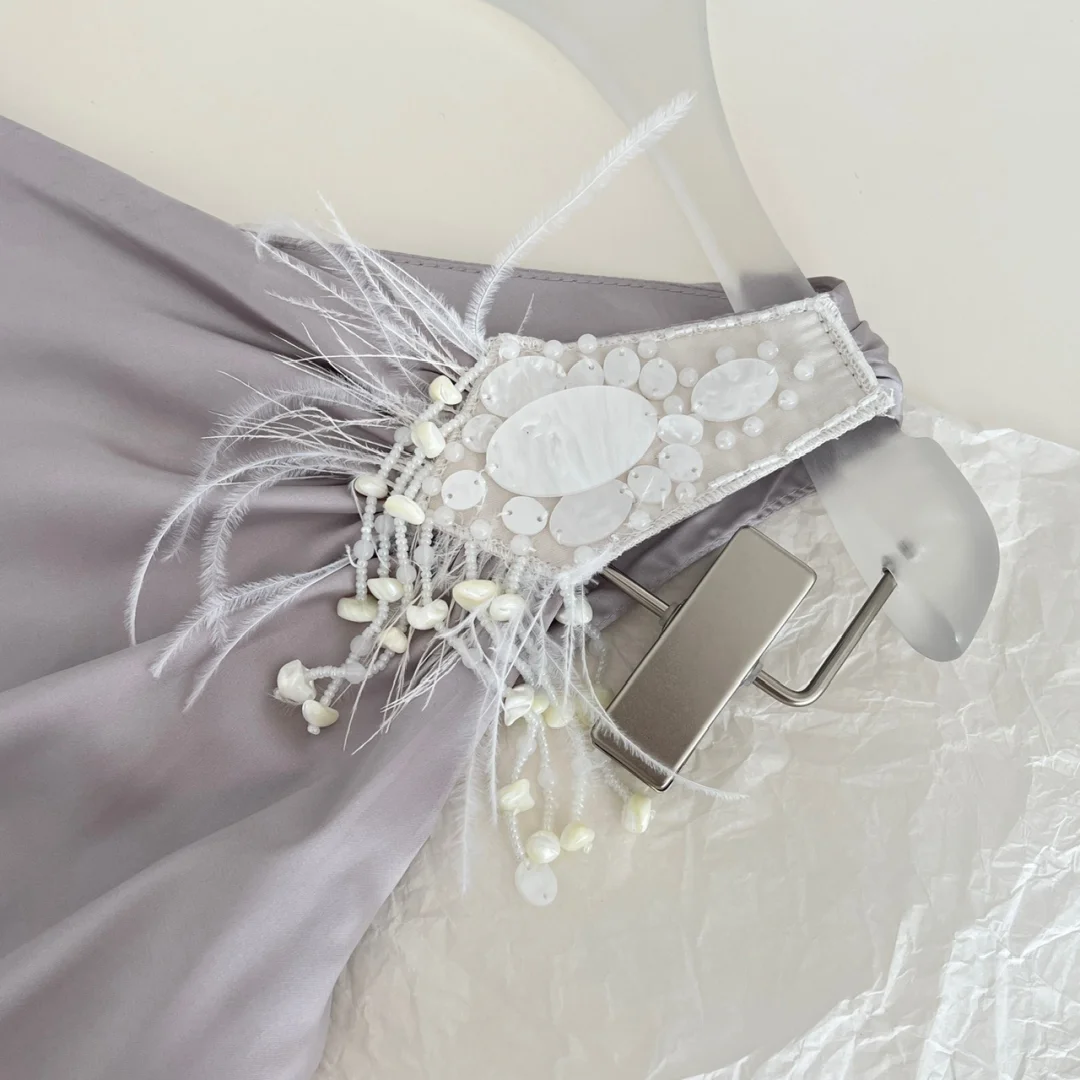 Gray one shoulder tulle long prom dress gray tulle evening dress HZ1024