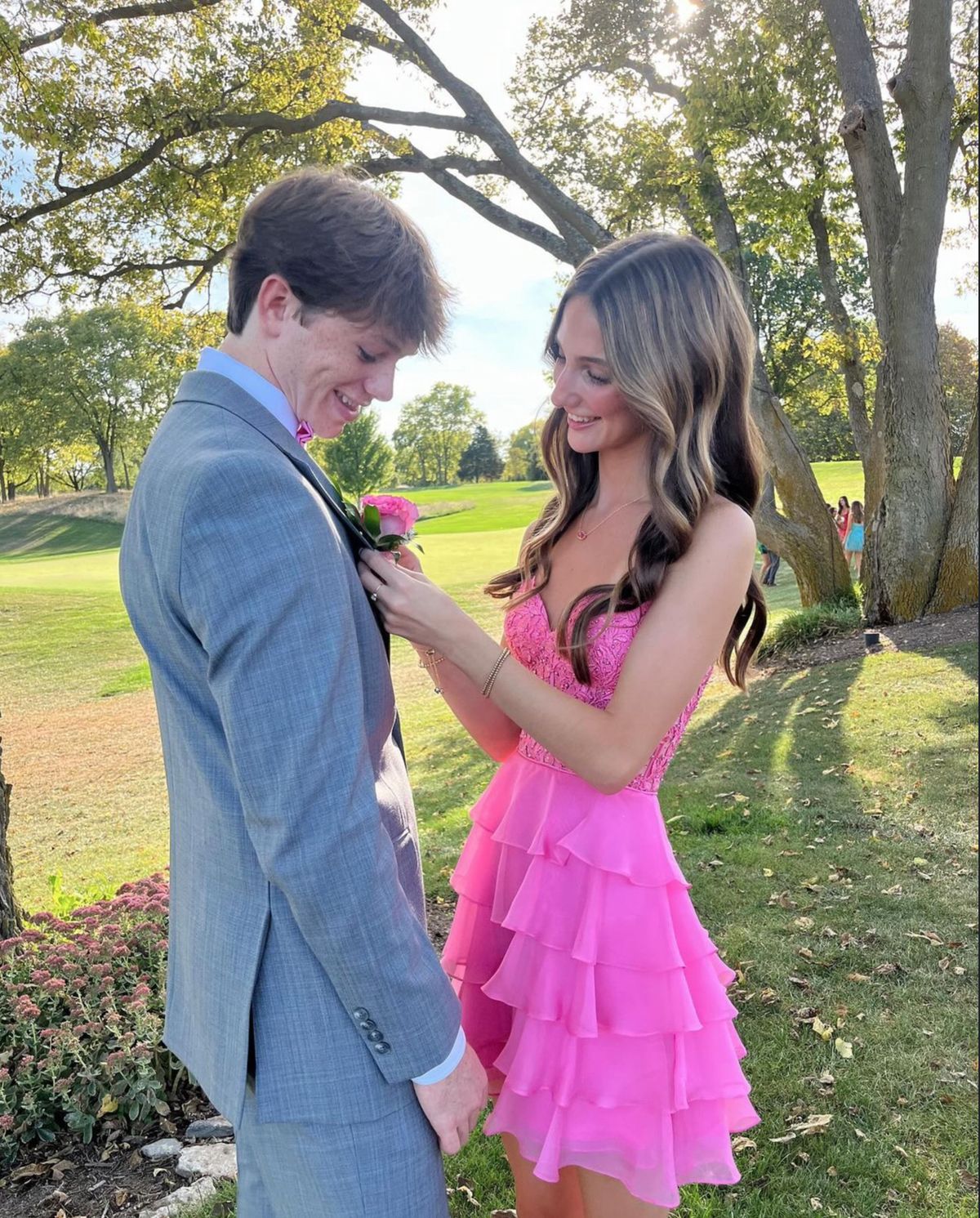 Lovely A Line Spaghetti Straps Layer Chiffon Lace Short Homecoming Dress 20th Birthday Outfits HZ1024