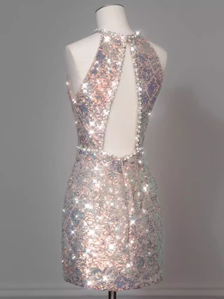 Modest Sheath Sequin Short Prom Dresses HZ1024
