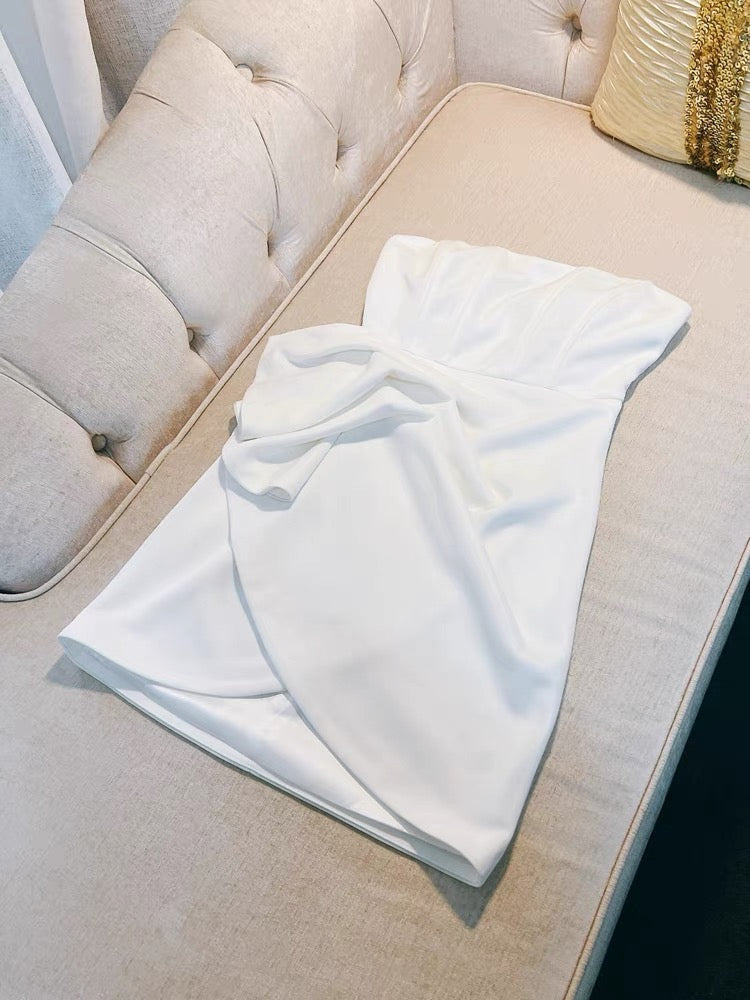Simple A line Strapless White Short Satin Homecoming Dress Birthday Dresses HZ1024