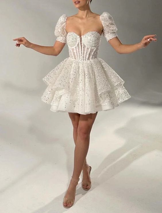 A-Line White Sheer Corset Short Sequin Homecoming Dress HZ1024