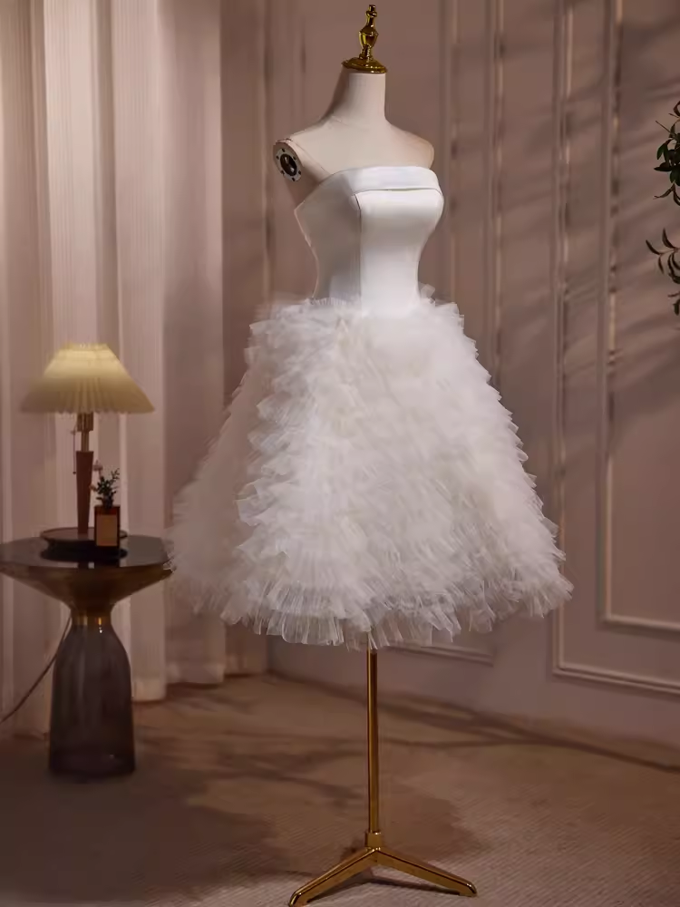 Ball Gown Strapless White Satin Homecoming Dress 18th Birthday Outfits HZ1024