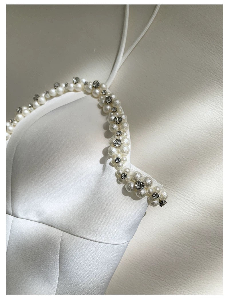 Cute A line Spagetti Straps White Short Pearls Homecoming Dress Birthday Dresses HZ1024
