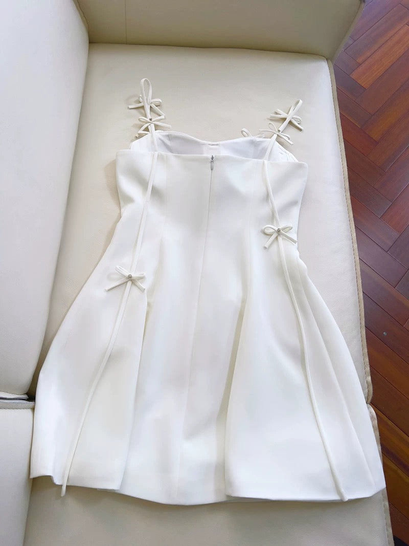 Cute A line Spaghetti Straps White Short Homecoming Dress Birthday Dresses With Bow HZ1024