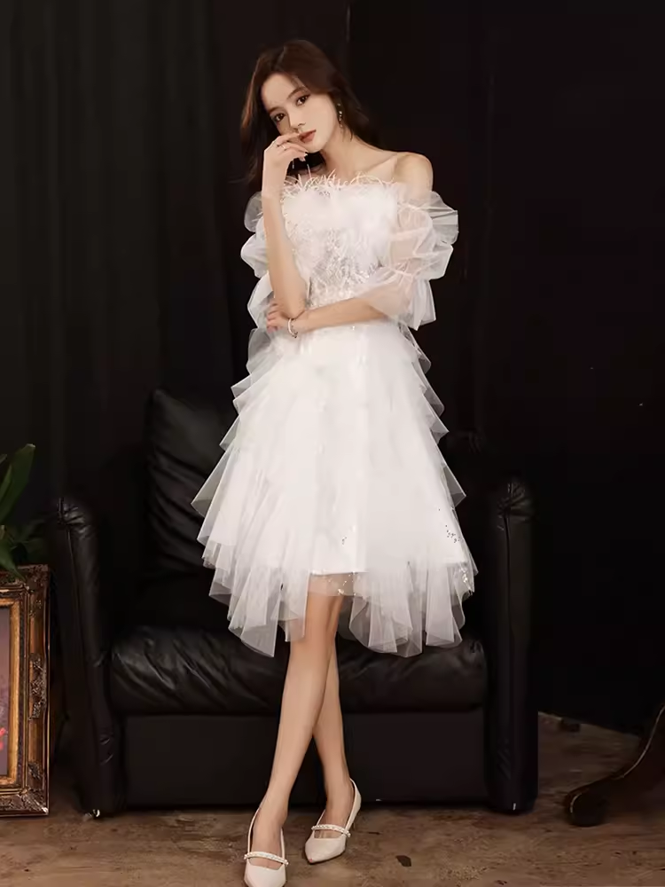 Cute A line Square Neckline Tulle Short Homecoming Dress White Hoco Dresses HZ1024