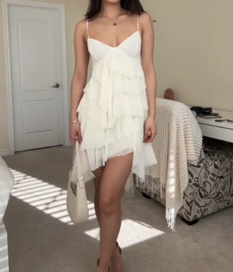 Cute A line Straps Ivory Short Chiffon Homecoming Dresses Cocktail Dress HZ1024