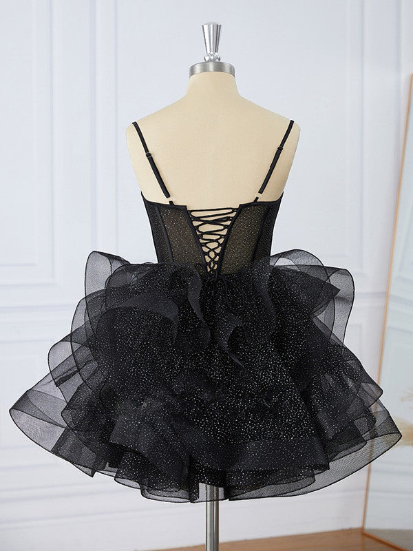 Cute Ball Gown Spaghetti Straps Tulle Short Homecoming Dress Birthday Dresses HZ1024