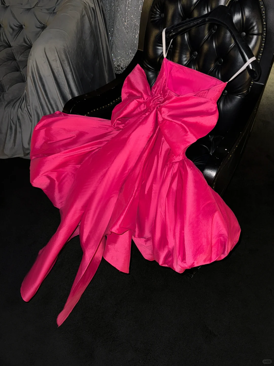 Hot Pink Ball Gown Spaghetti Straps Satin Back With Bow Short Homecoming Dress 18th Birthday Outfits HZ1024