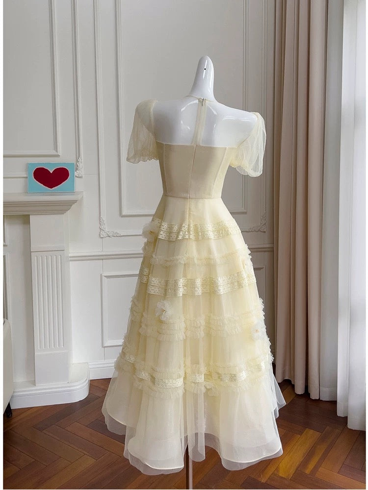 Modest A Line Scoop Neckline Yellow Lace Homecoming Dresses Birthday Outfits With Beads HZ1024