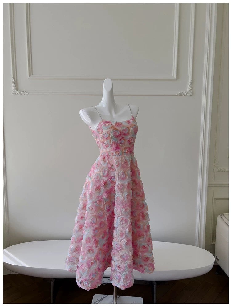 Modest A line Spaghetti Straps Pink Floral Prom Dress Formal Dresses HZ1024