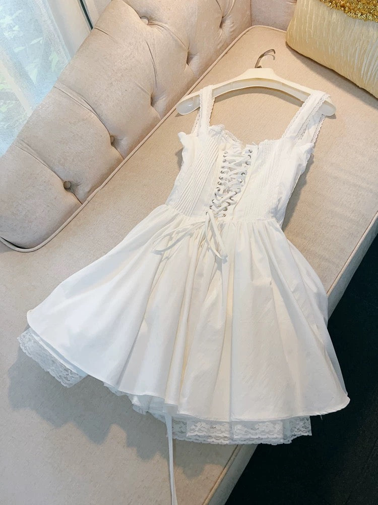 Modest A Line Straps Short Lace White Homecoming Dresses Party Dress HZ1024