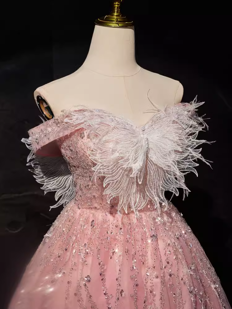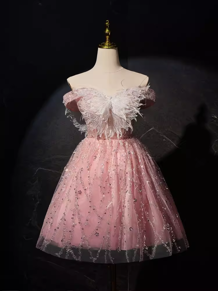Modest Ball Gown Off The Shoulder Pink Tulle Birthday Outfits Homecoming Dress HZ1024