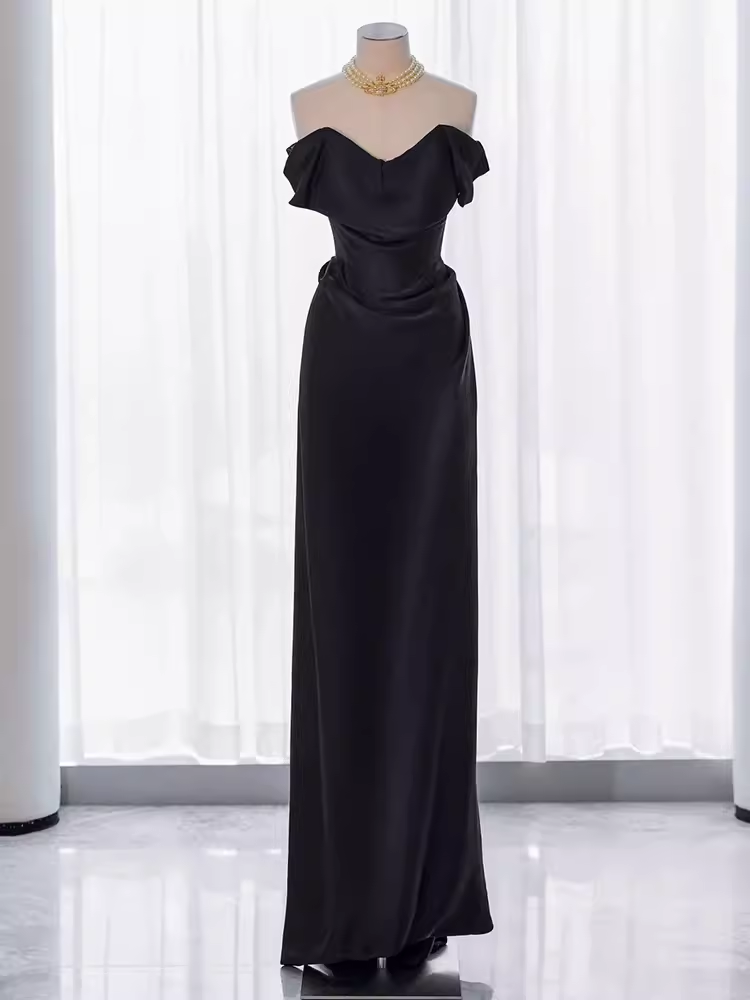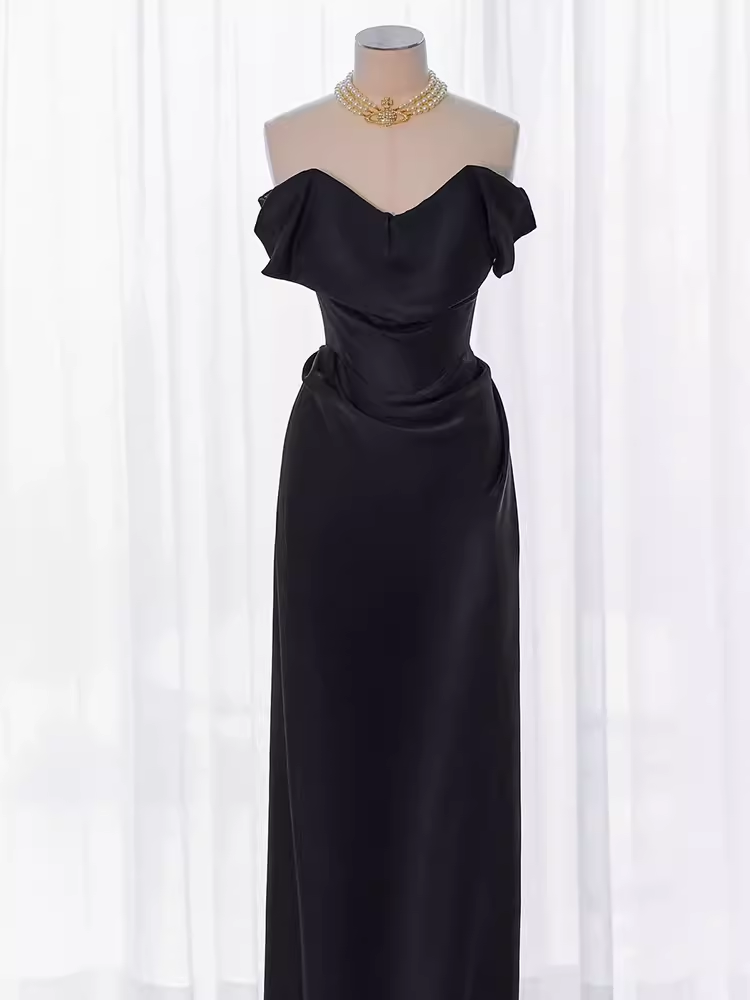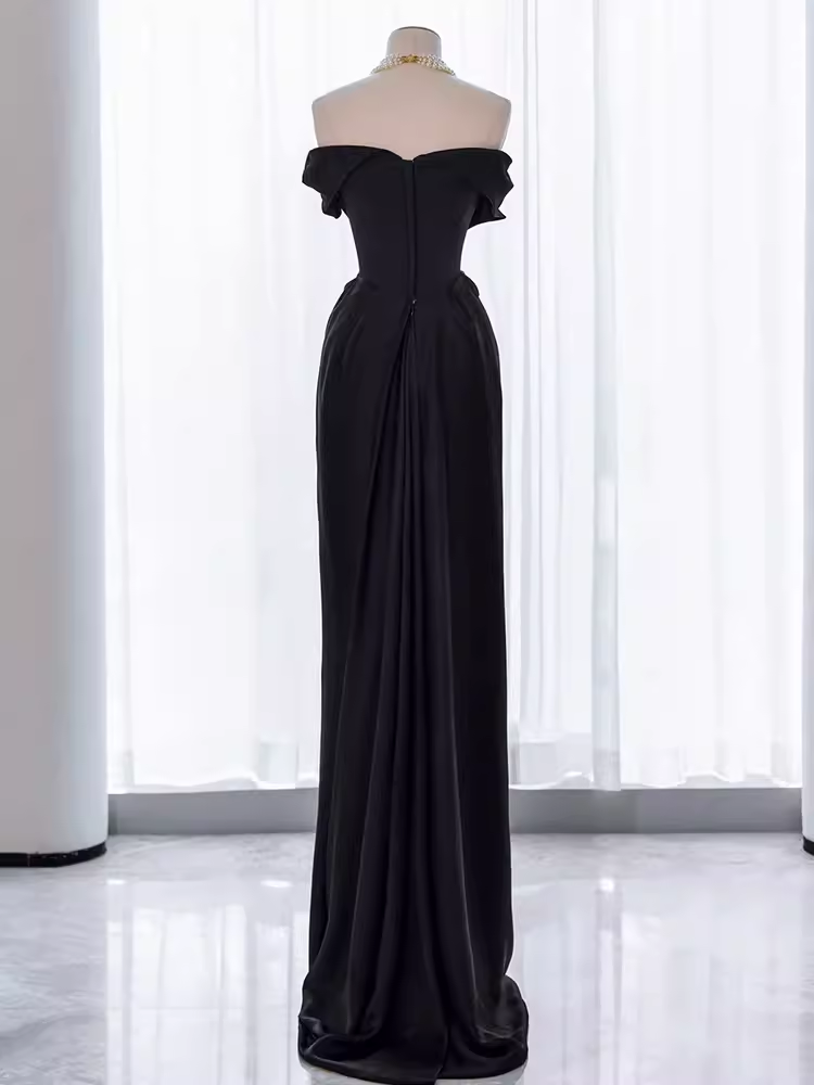 Modest Mermaid Off The Shoulder Black Satin Long Prom Dresses HZ1024
