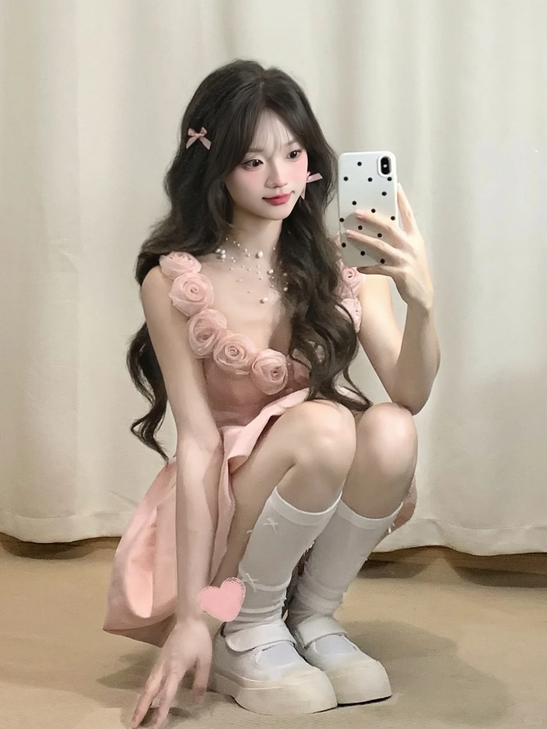 Pink A Line Spaghetti Straps Satin Flowers Short Homecoming Dress 18th Birthday Outfits HZ1024
