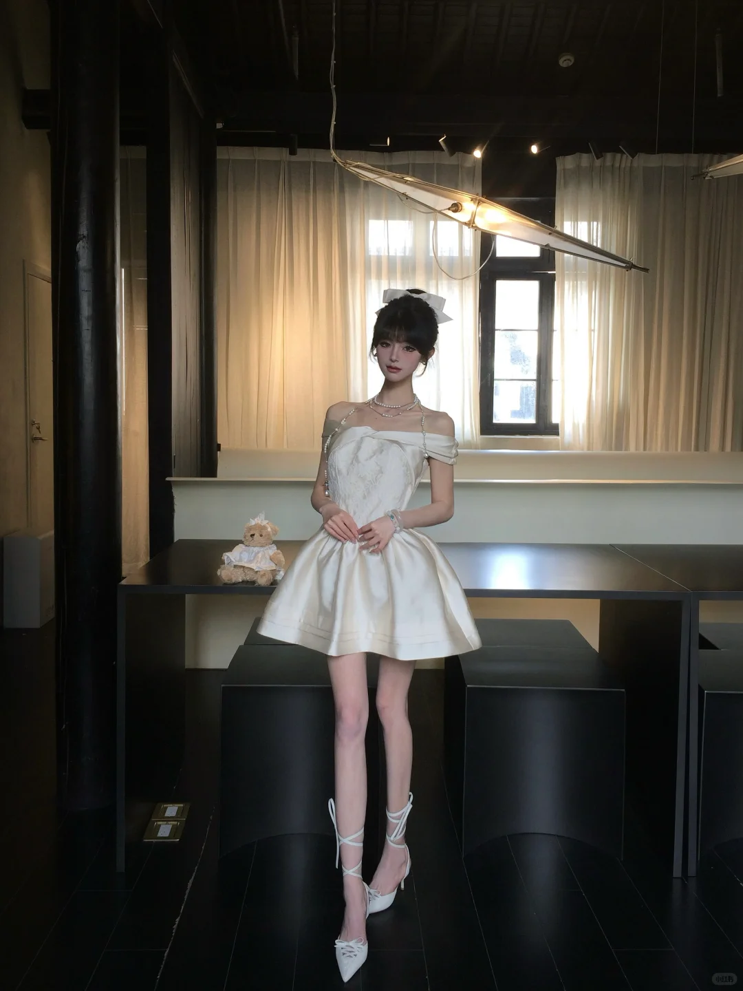 Pretty 19th A Line Off The Shoulder Satin Short Homecoming Dress Birthday Outfits HZ1024