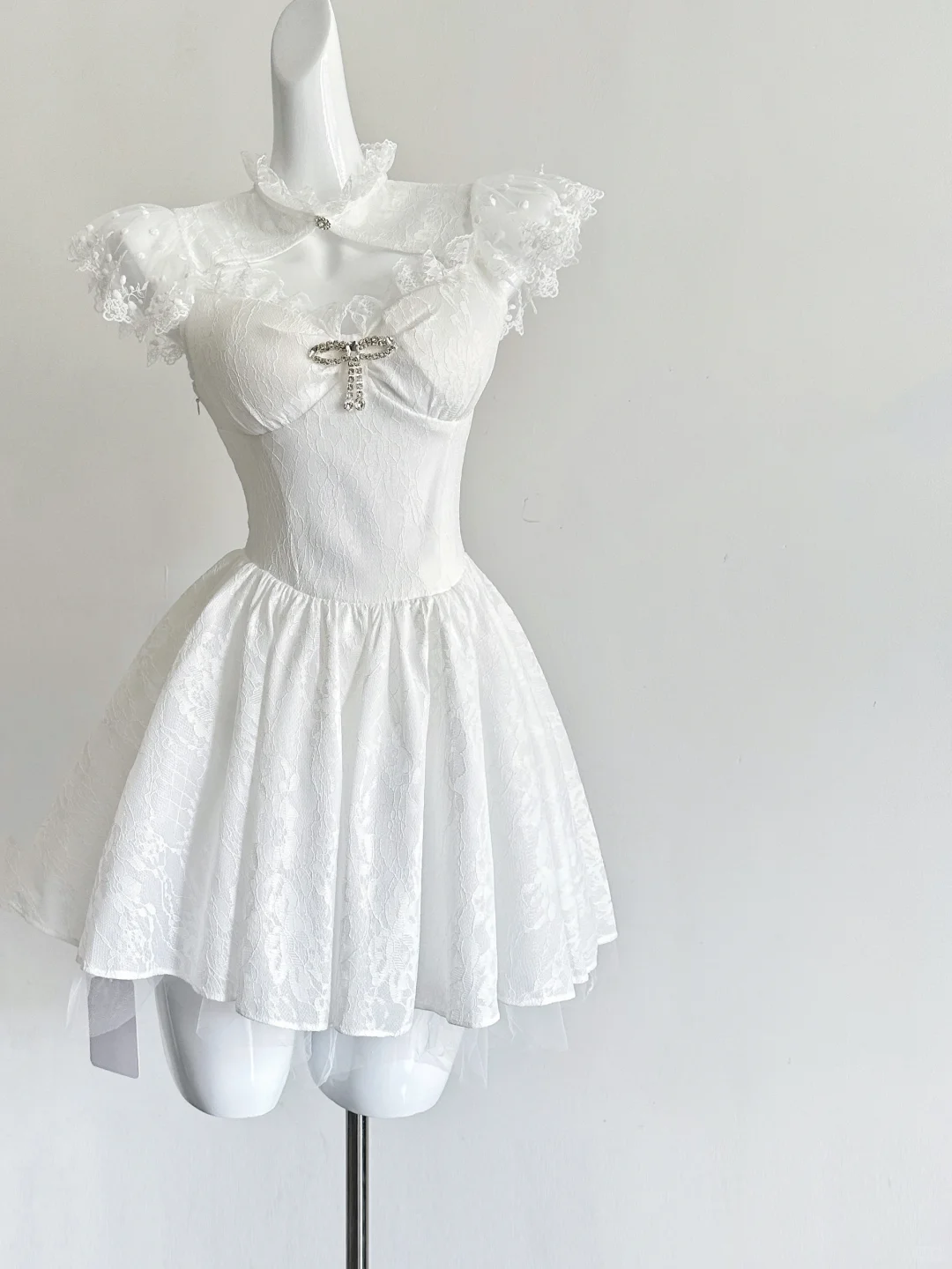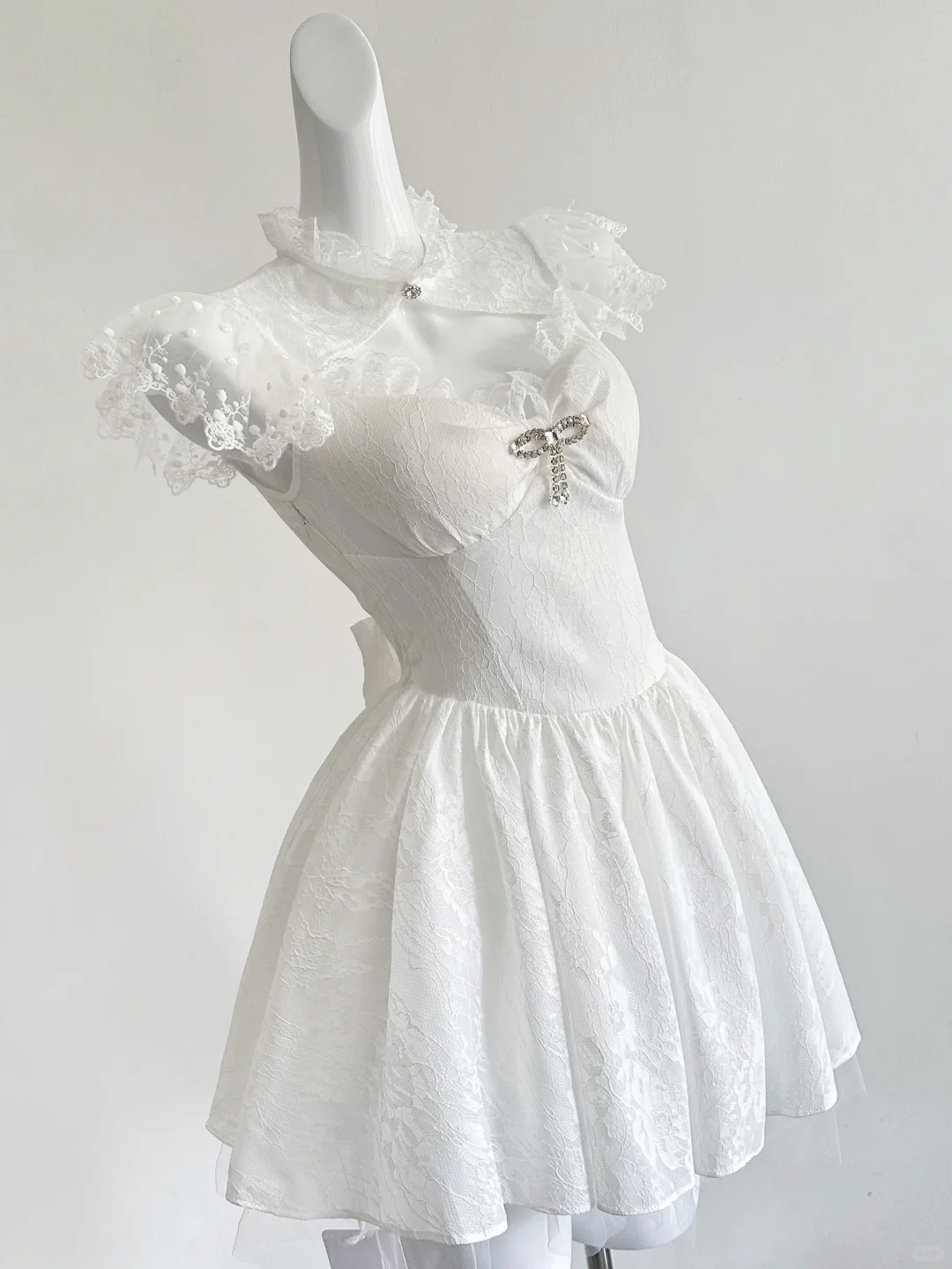 Princess White A Line Satin Lace Short Homecoming Dress 19th Birthday Outfits HZ1024