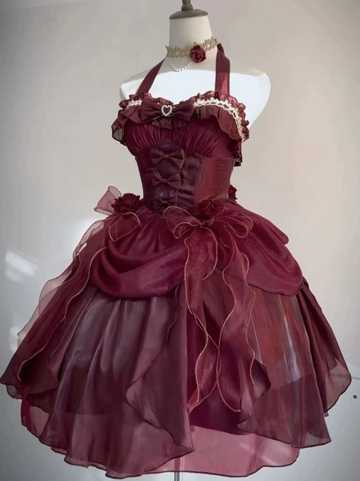 Retro Ball Gown Halter Burgundy Chiffon With Bow Mini Short Homecoming Dress 19th Birthday Outfits HZ1024