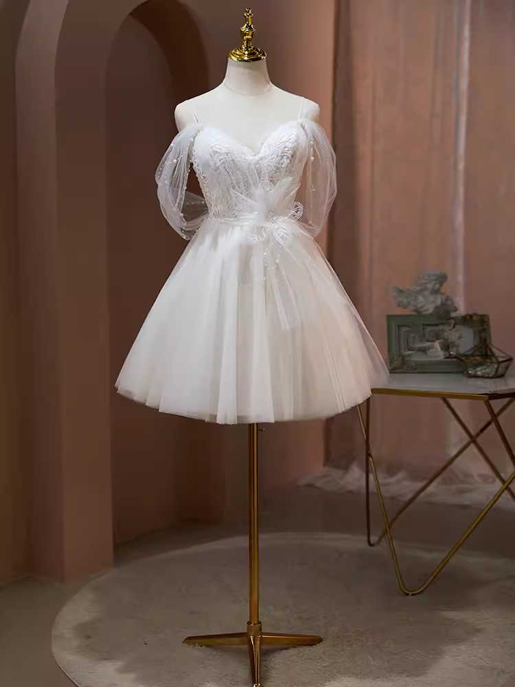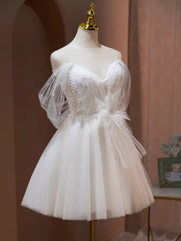 Sexy A line Off The Shoulder Tulle White Short Homecoming Dresses HZ1024