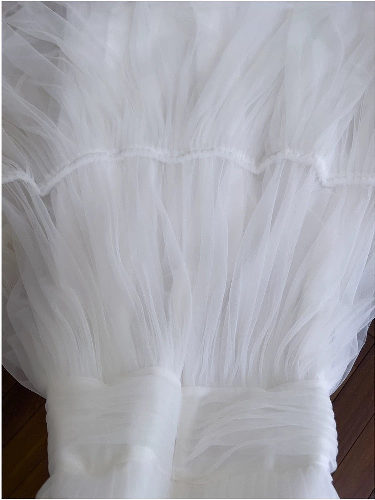 Sexy A Line Spaghetti Straps Sleeveless Tulle White Prom Dresses HZ1024