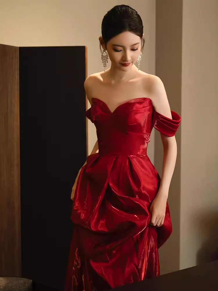Sexy Mermaid Red Long Prom Dresses Satin Birthday Outfits HZ1024