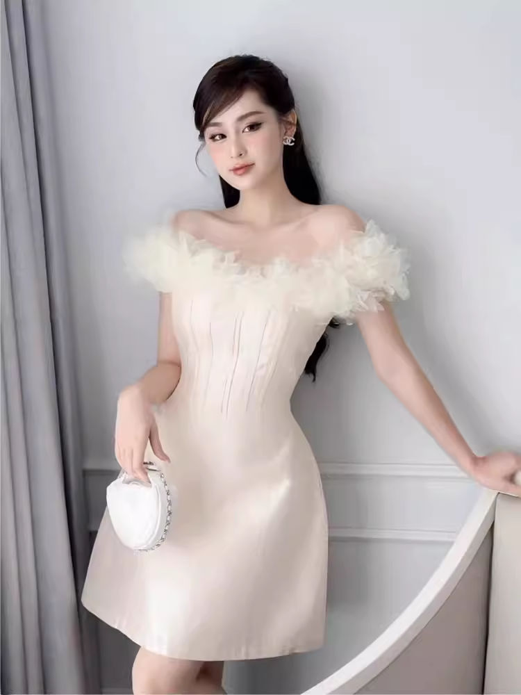 Simple A-Line Off The Shoulder Tulle Short Birthday Outfits Homecoming Dress HZ1024