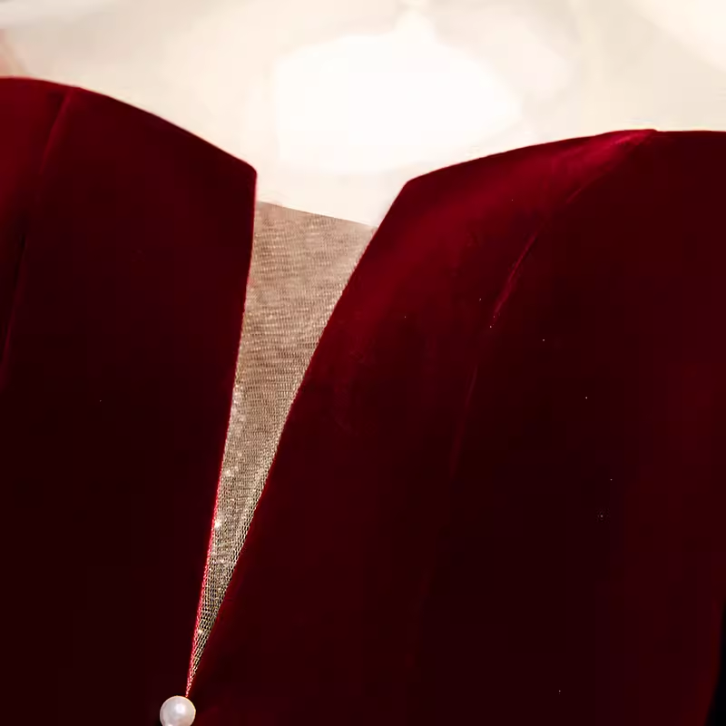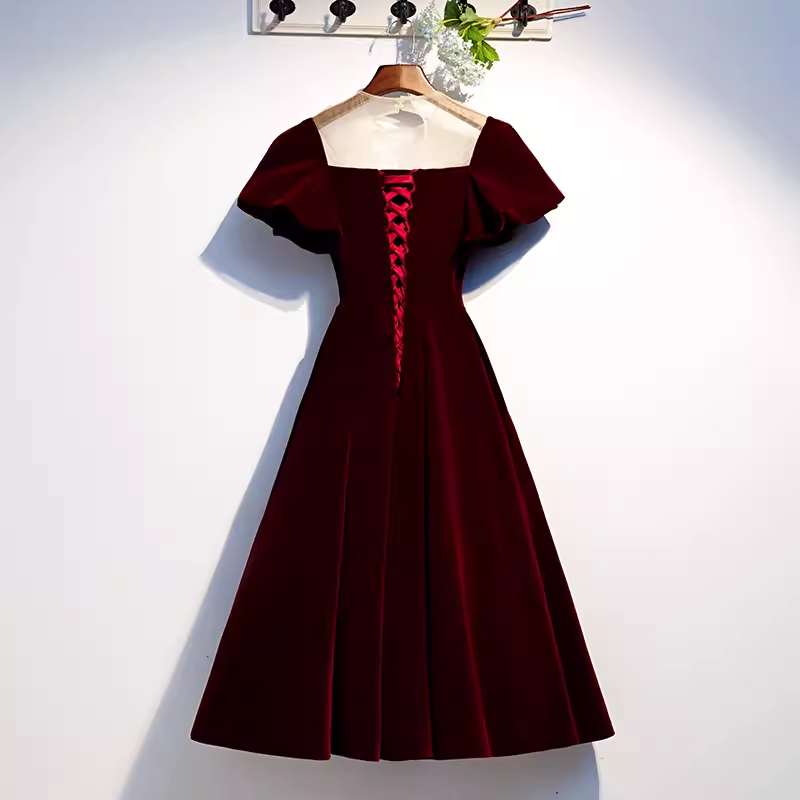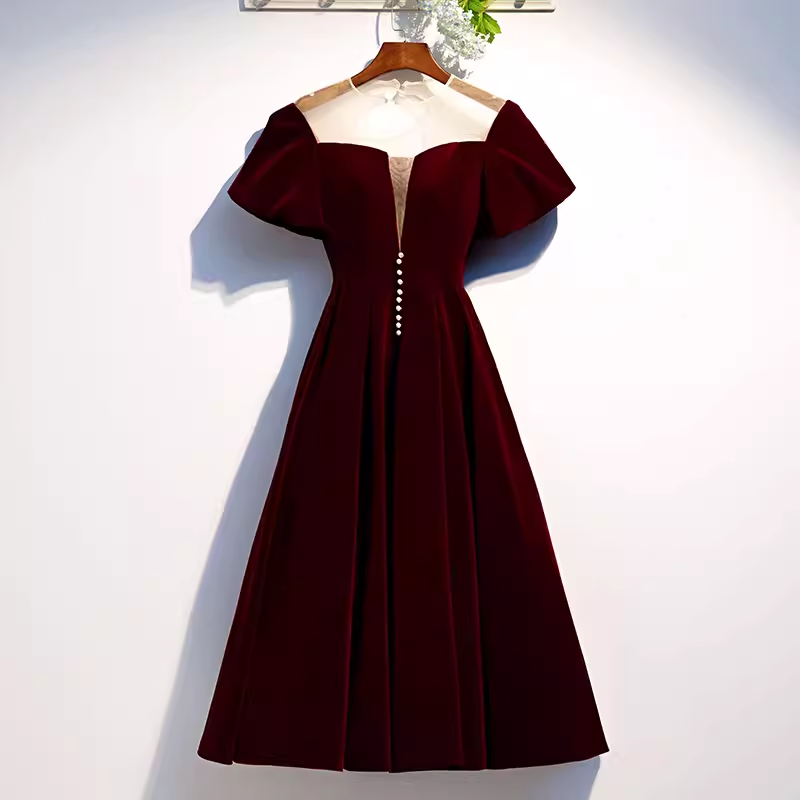 Simple A line Short Sleeves Velvet Red Bridesmaid Dress HZ1024