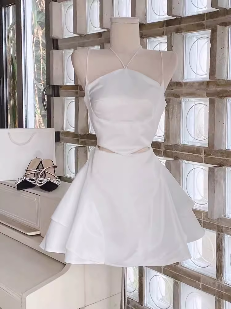 Simple A Line Spaghetti Straps Short Birthday Dress White Homecoming Dresses HZ1024