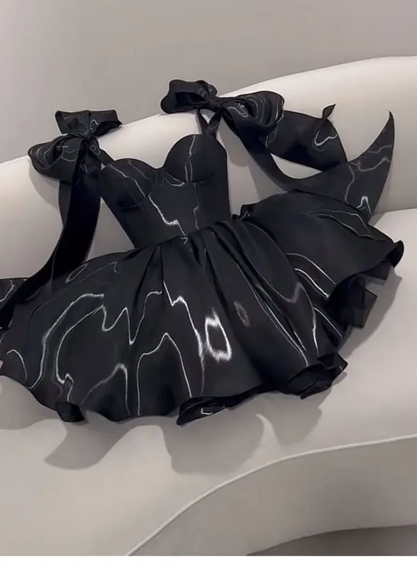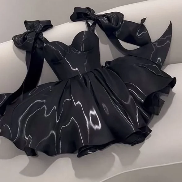 Simple A Line Straps Short Black Homecoming Dress HZ1024