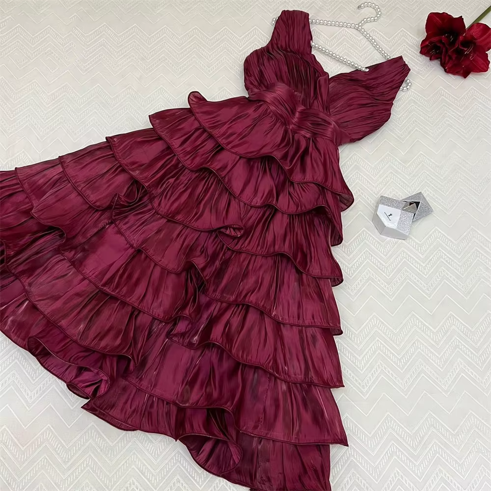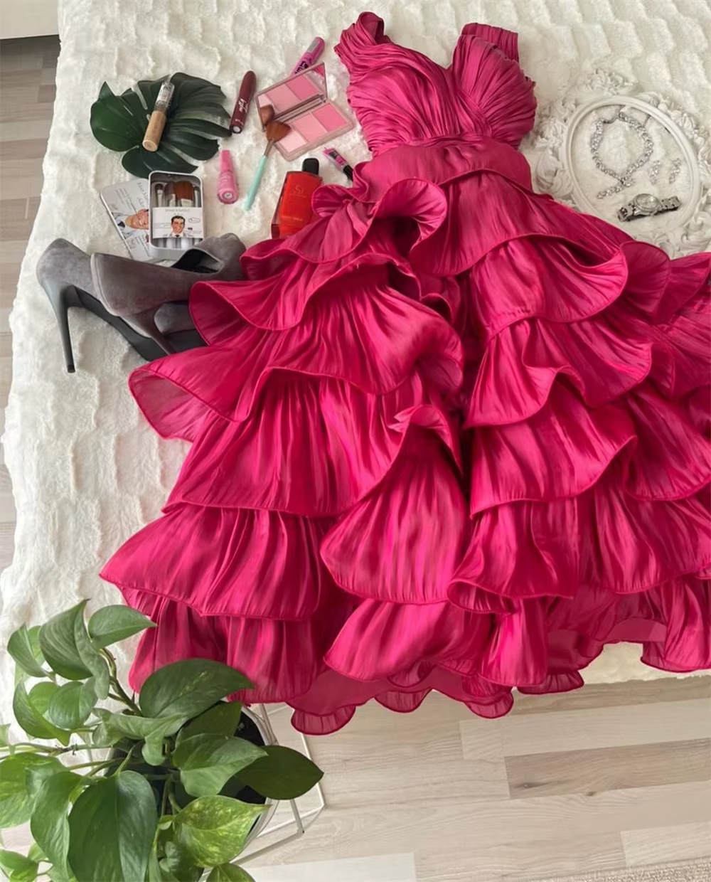 Simple Ball Gown Straps Hot Pink knee Length Ruffles Homecoming Dresses HZ1024