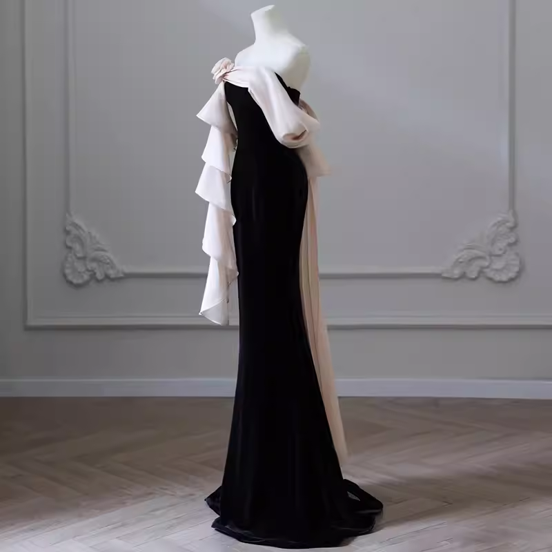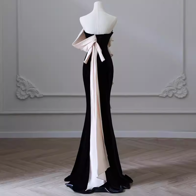 Simple Mermaid Strapless Velvet Black Long Prom Dress HZ1024