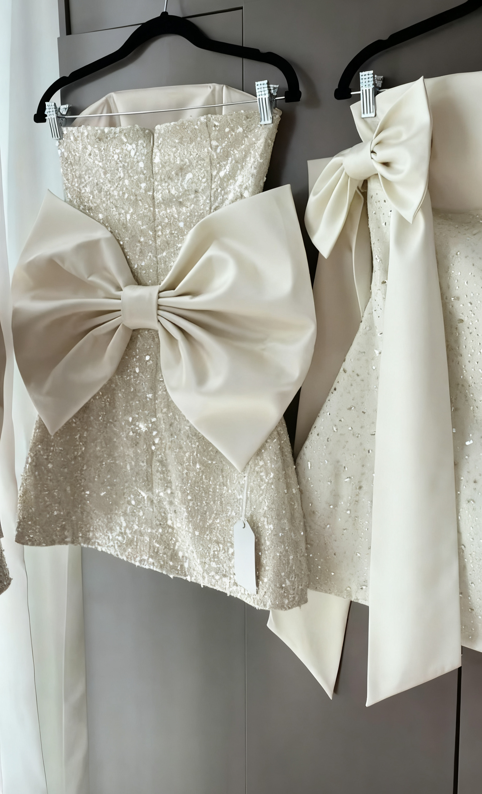 Sparkly A Line Strapless Satin Sequin Backless With Bow Short Homecoming Dress 19th Birthday Outfits HZ1024