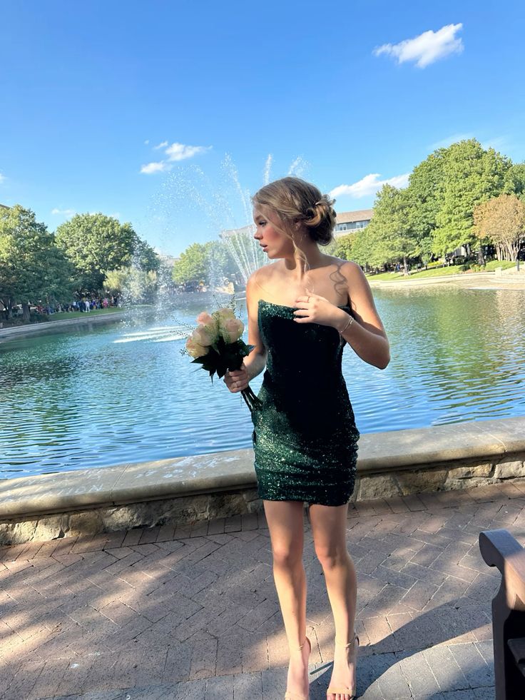 Sparkly Dark Green Mermaid Strapless Sequin Short Homecoming Dress 21th Birthday Outfits HZ1024