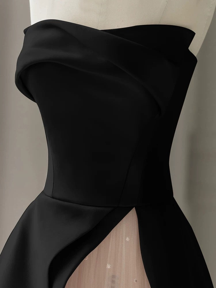 Strapless Satin Pearls Tulle Long Prom Dresses Party Dress HZ1024