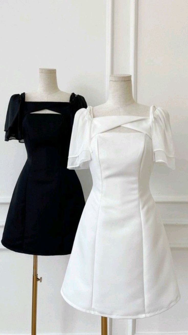 Vintage A line Short Sleeves Satin Homecoming Dress HZ1024