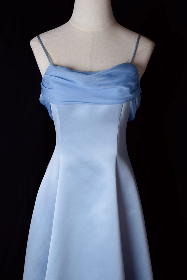 Vintage A Line Spaghetti Straps Blue Long Prom Dresses HZ1024