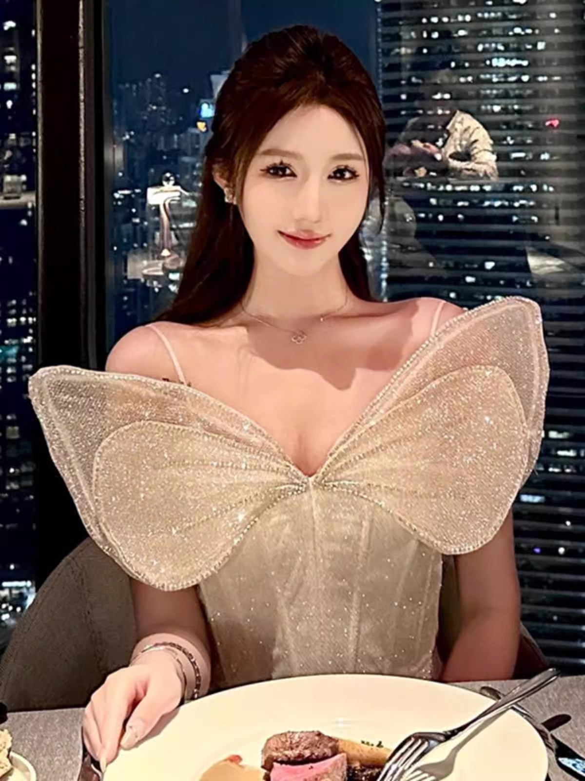 Champagne v neck tulle lace long prom dress champagne evening dress HZ1024
